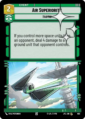 If you control more space units than an opponent, deal 4 damage to a ground unit that opponent controls.