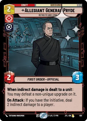 When indirect damage is dealt to a unit: You may defeat a non-unique upgrade on it.