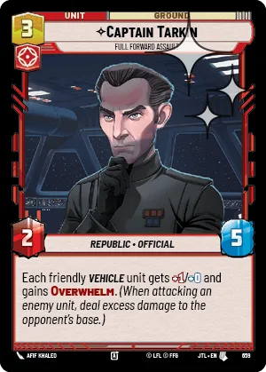 Each friendly Vehicle unit gets +1/+0 and gains Overwhelm. (When attacking an enemy unit, deal excess damage to the opponent's base.)