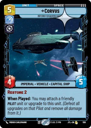When Played: You may attach a friendly Pilot unit or upgrade to this unit. (Defeat all upgrades on that Pilot and remove all damage from it.)