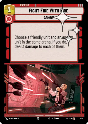 Choose a friendly unit and an enemy unit in the same arena. If you do, deal 3 damage to each of them.