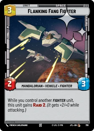 While you control another Fighter unit, this unit gains Raid 2. (It gets +2/+0 while attacking.)