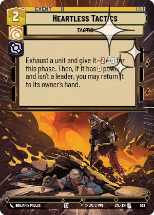 Exhaust a unit and give it –2/–0 for this phase. Then, if it has 0 power and isn't a leader, you may return it to its owner's hand.