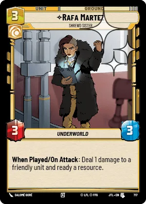 When Played/On Attack: Deal 1 damage to a friendly unit and ready a resource.