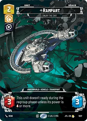 This unit doesn't ready during the regroup phase unless its power is 4 or more.