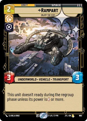 This unit doesn't ready during the regroup phase unless its power is 4 or more.