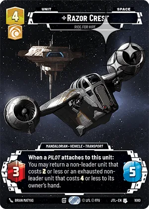 When a Pilot attaches to this unit: You may return a non-leader unit that costs 2 or less or an exhausted non-leader unit that costs 4 or less to its owner's hand.