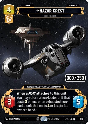 When a Pilot attaches to this unit: You may return a non-leader unit that costs 2 or less or an exhausted non-leader unit that costs 4 or less to its owner's hand.