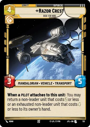 When a Pilot attaches to this unit: You may return a non-leader unit that costs 2 or less or an exhausted non-leader unit that costs 4 or less to its owner's hand.