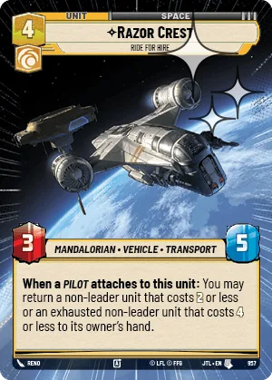 When a Pilot attaches to this unit: You may return a non-leader unit that costs 2 or less or an exhausted non-leader unit that costs 4 or less to its owner's hand.