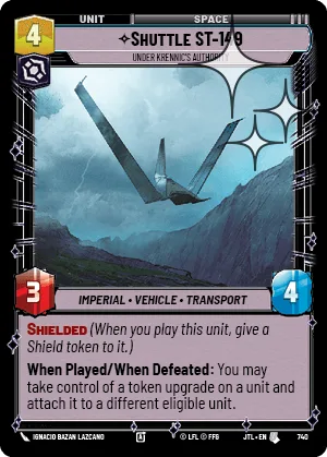 When Played/When Defeated: You may take control of a token upgrade on a unit and attach it to a different eligible unit.