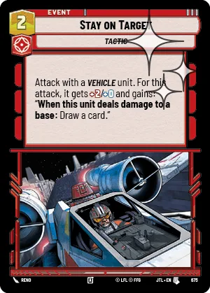 Attack with a Vehicle unit. For this attack, it gets +2/+0 and gains: “When this unit deals damage to a base: Draw a card.”