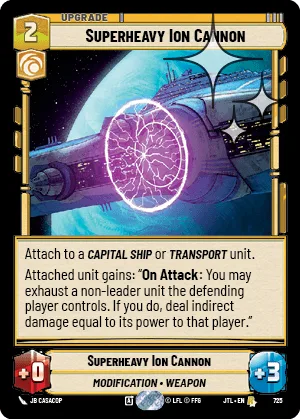 Attached unit gains: “On Attack: You may exhaust a non-leader unit the defending player controls. If you do, deal indirect damage equal to its power to that player.”