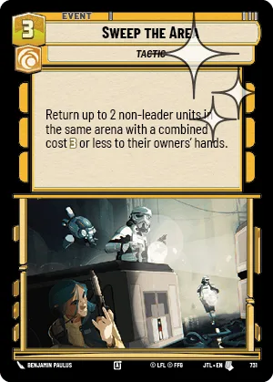 Return up to 2 non-leader units in the same arena with a combined cost 3 or less to their owners' hands.