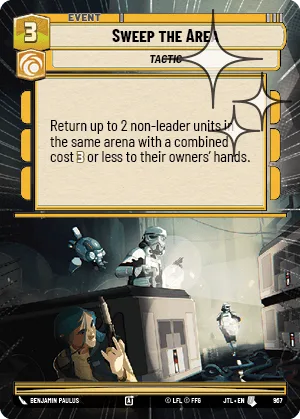 Return up to 2 non-leader units in the same arena with a combined cost 3 or less to their owners' hands.
