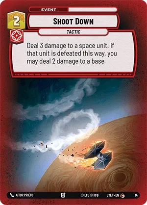 Deal 3 damage to a space unit. If that unit is defeated this way, you may deal 2 damage to a base.