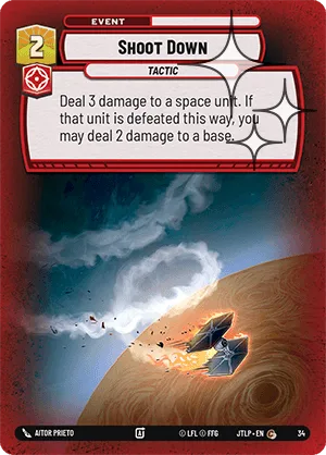 Deal 3 damage to a space unit. If that unit is defeated this way, you may deal 2 damage to a base.