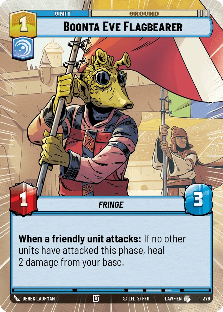 When a friendly unit attacks: If no other units have attacked this phase , heal 2 damage from your base.