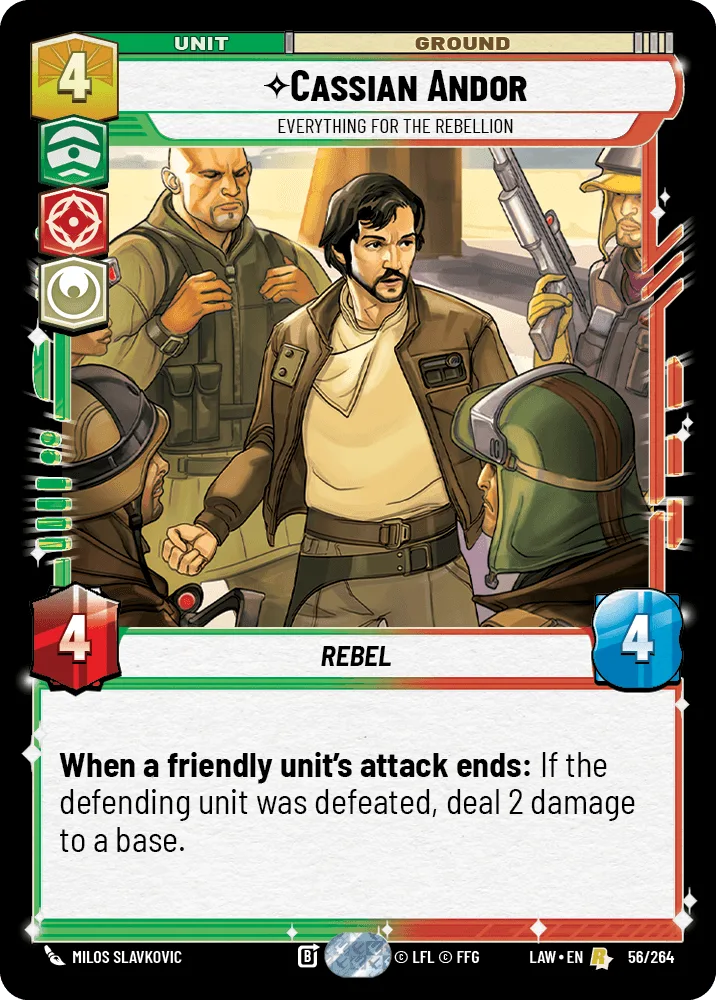 When a friendly unit's attack ends: If the defending unit was defeated, deal 2 damage to a base.