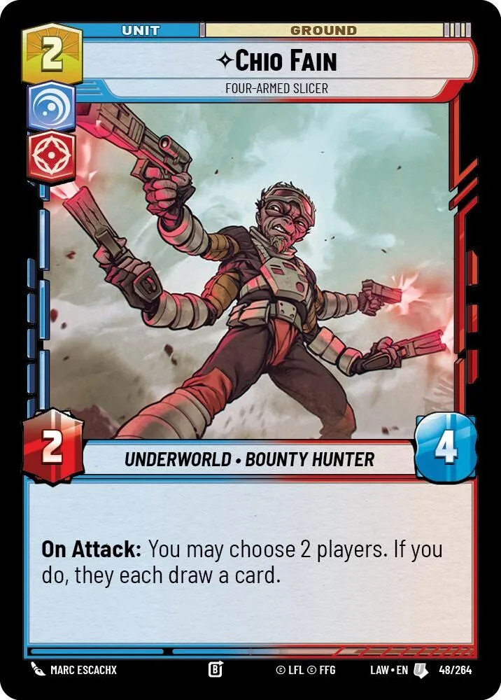 On Attack: You may choose 2 players. If you do, they each draw a card.