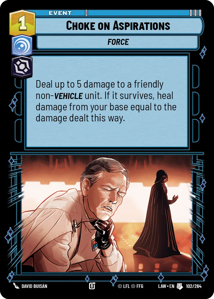Deal up to 5 damage to a friendly non-Vehicle unit. If it survives, heal damage from your base equal to the damage dealt this way.