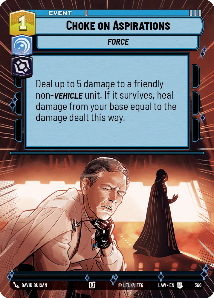 Deal up to 5 damage to a friendly non-Vehicle unit. If it survives, heal damage from your base equal to the damage dealt this way.