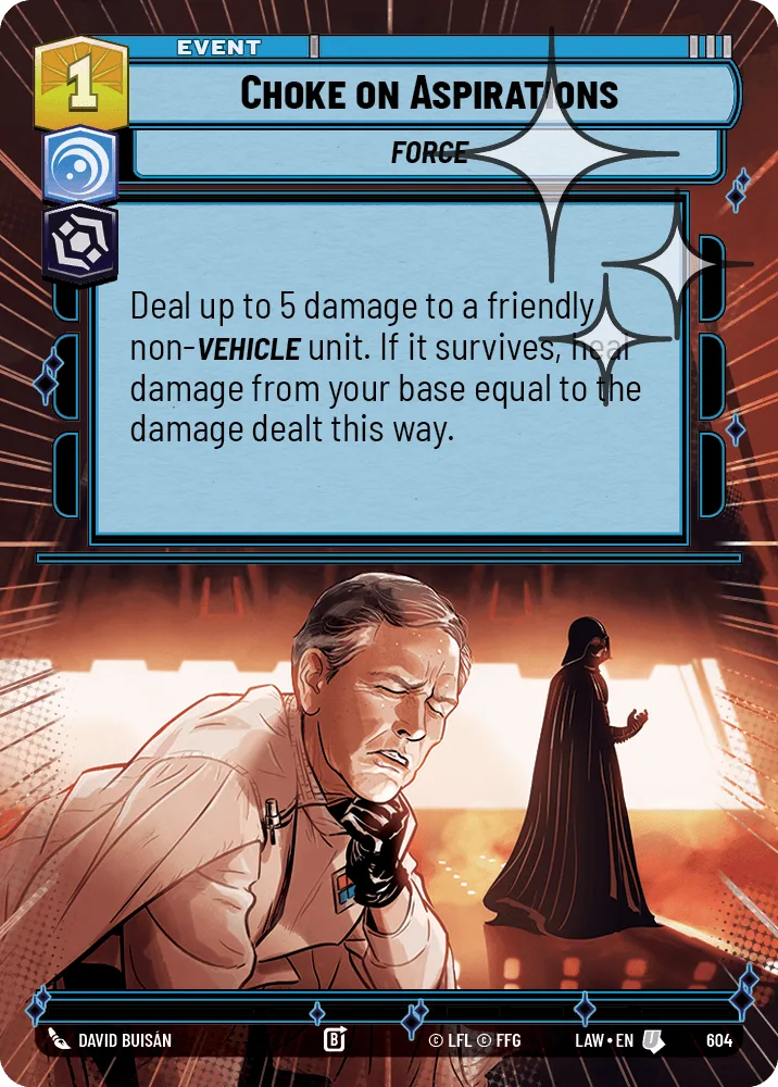 Deal up to 5 damage to a friendly non-Vehicle unit. If it survives, heal damage from your base equal to the damage dealt this way.