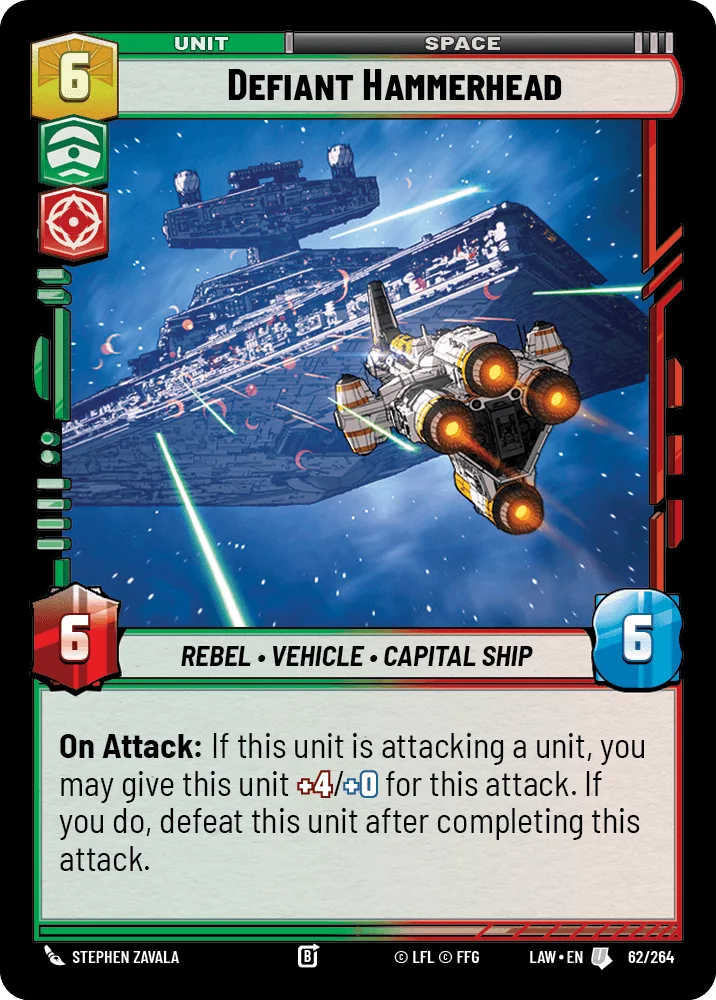 On Attack: If this unit is attacking a unit, you may give this unit +4/+0 for this attack. If you do, defeat this unit after completing this attack.