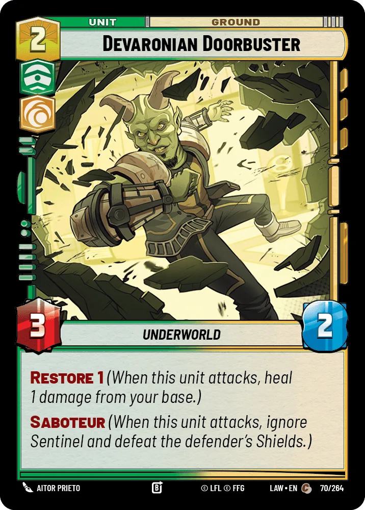 Saboteur (When this unit attacks, ignore Sentinel and defeat the defender's Shields.)