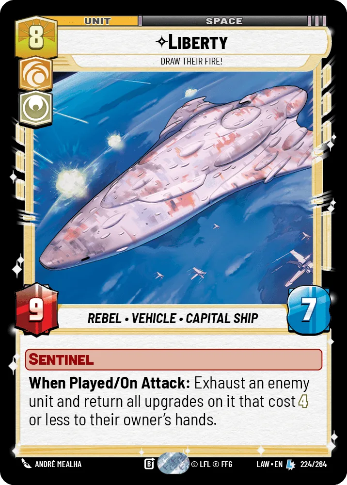 When Played/On Attack: Exhaust an enemy unit and return all upgrades on it that cost 4 or less to their owner's hands.