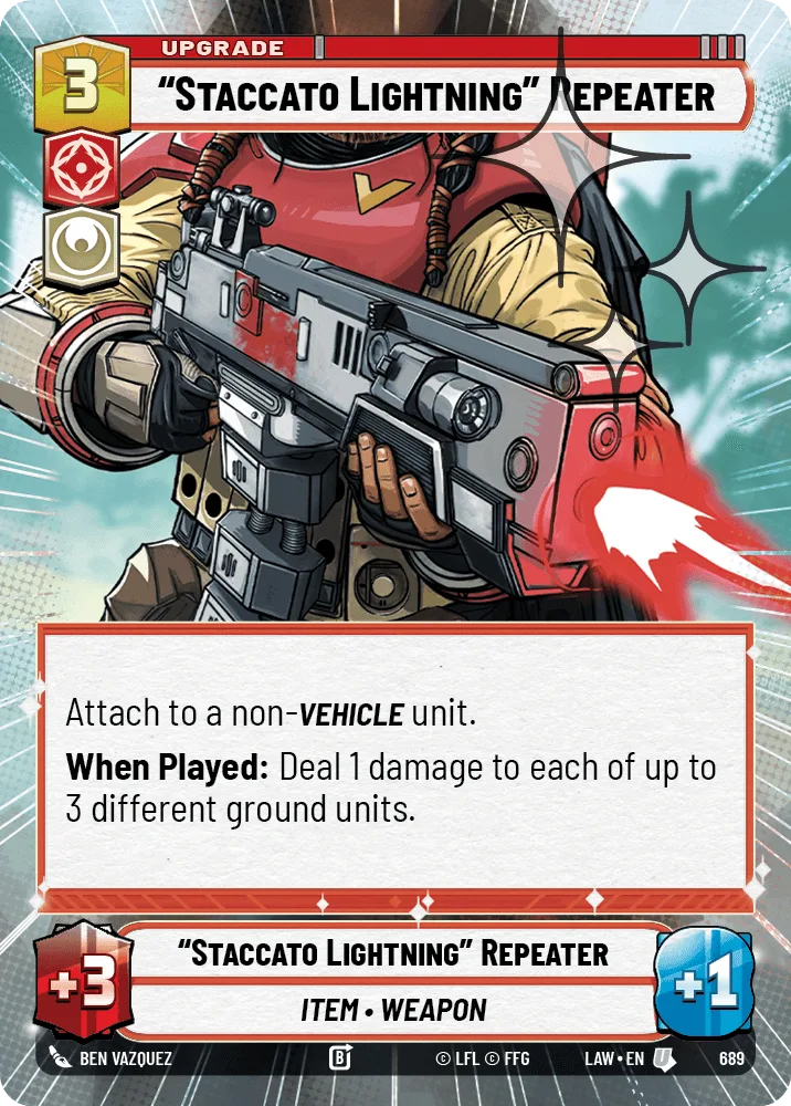 When Played: Deal 1 damage to each of up to 3 different ground units.