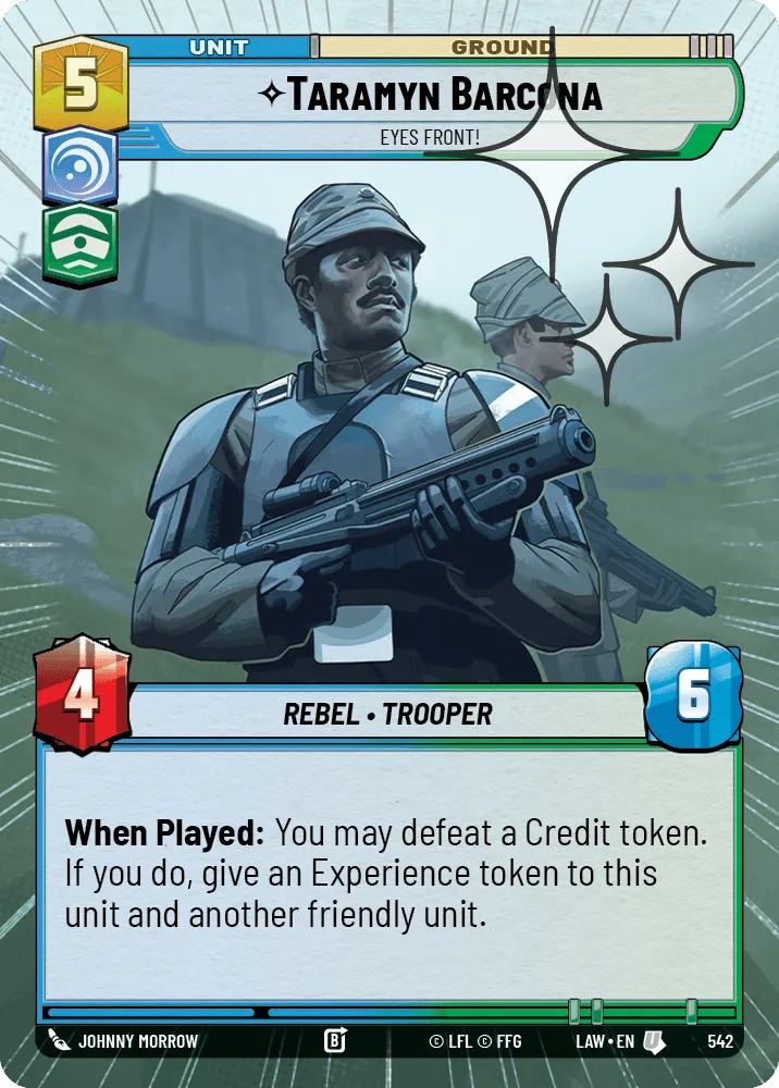 When Played: You may defeat a Credit token . If you do, give an Experience token to this unit and another friendly unit.