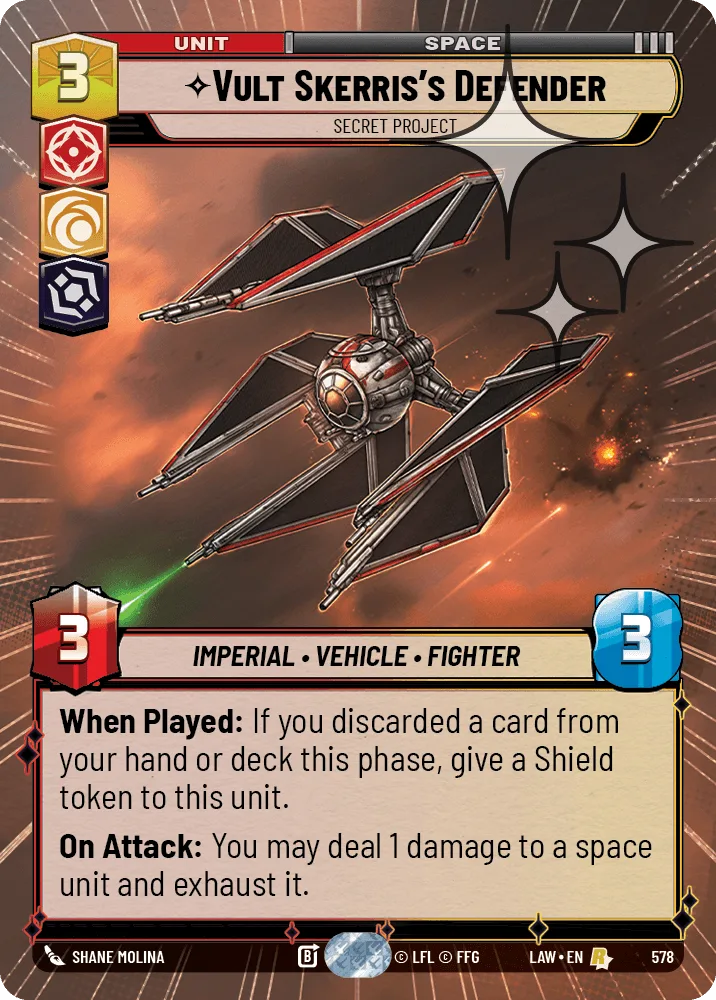 When Played: If you discarded a card from your hand or deck this phase, give a Shield token to this unit.