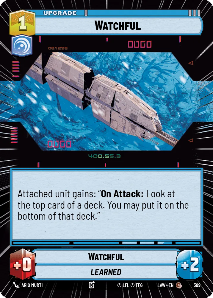 Attached unit gains: “On Attack: Look at the top card of a deck. You may put it on the bottom of that deck. ”