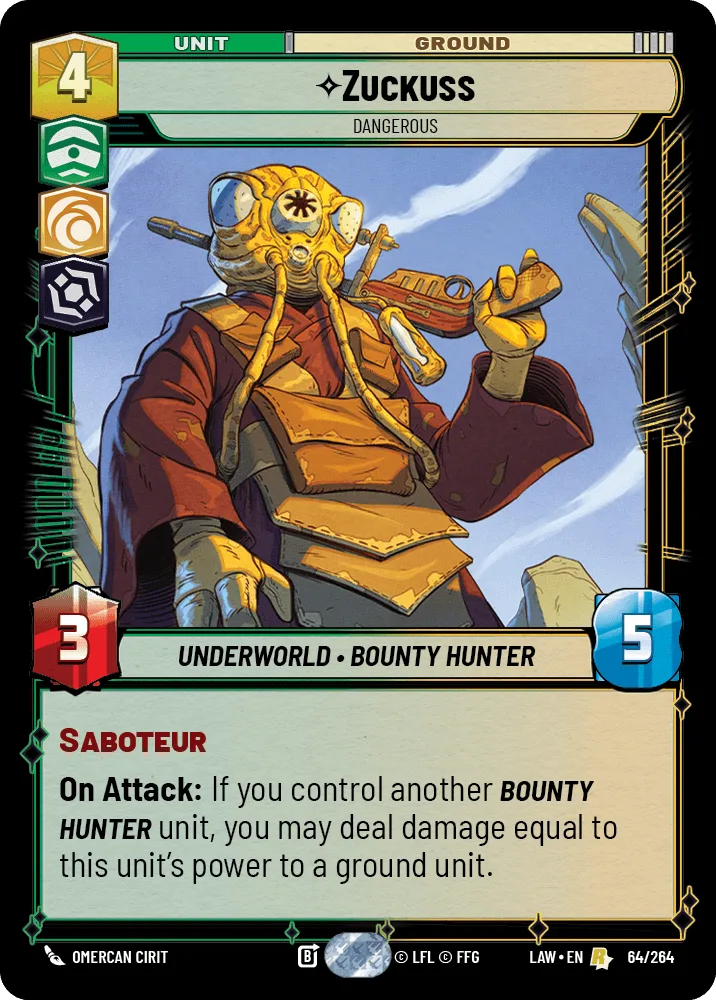 On Attack: If you control another Bounty Hunter unit, you may deal damage equal to this unit's power to a ground unit.