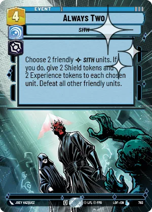 Sith units. If you do, give 2 Shield tokens and 2 Experience tokens to each chosen unit. Defeat all other friendly units.