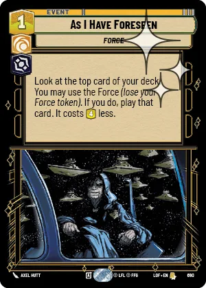 Look at the top card of your deck. You may use the Force (lose your Force token). If you do, play that card. It costs