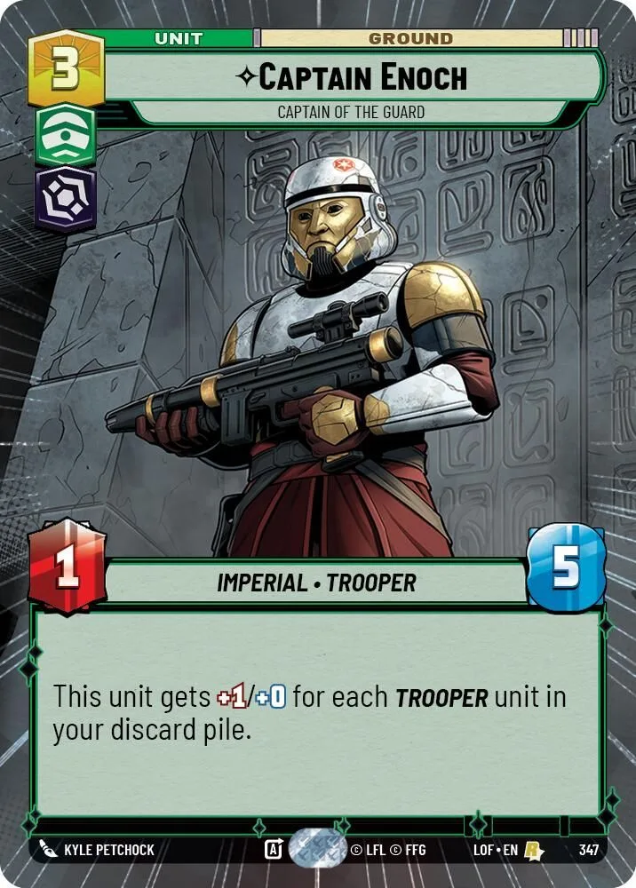 This unit gets +1/+0 for each Trooper unit in your discard pile.