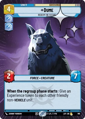 When the regroup phase starts: Give an Experience token to each other friendly non-Vehicle unit.
