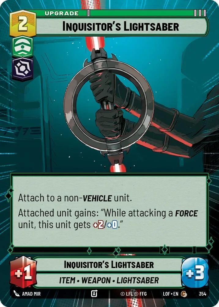 Attached unit gains: “While attacking a Force unit, this unit gets +2/+0.”