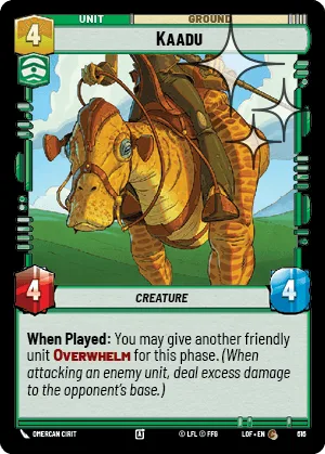 When Played: You may give another friendly unit Overwhelm for this phase. (When attacking an enemy unit, deal excess damage to the opponent's base.)