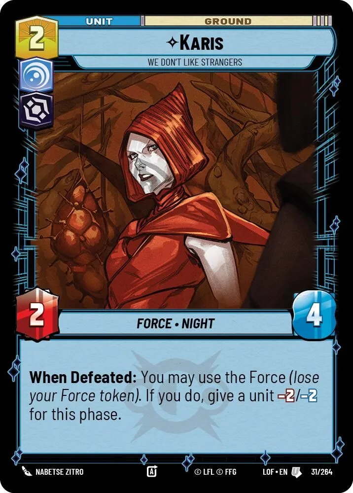 When Defeated: You may use the Force (lose your Force token). If you do, give a unit –2/–2 for this phase.