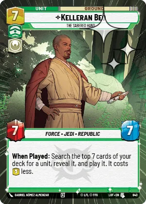 When Played: Search the top 7 cards of your deck for a unit, reveal it, and play it. It costs