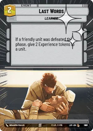 If a friendly unit was defeated this phase, give 2 Experience tokens to a unit.