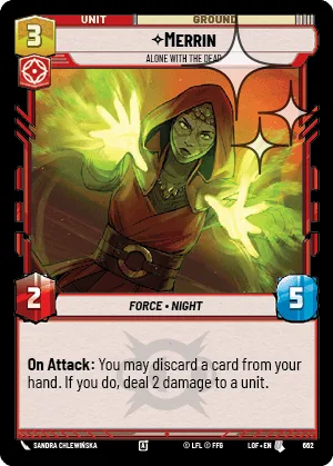 On Attack: You may discard a card from your hand. If you do, deal 2 damage to a unit.