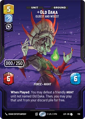 When Played: You may defeat a friendly Night unit not named Old Daka. Then, you may play that unit from your discard pile for free.