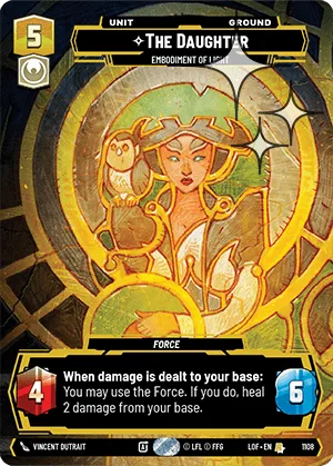 When damage is dealt to your base: You may use the Force . If you do, heal 2 damage from your base.