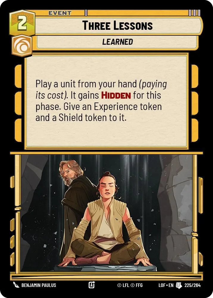 Play a unit from your hand (paying its cost). It gains Hidden for this phase. Give an Experience token and a Shield token to it.