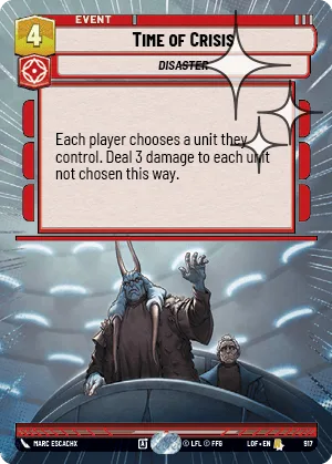 Each player chooses a unit they control. Deal 3 damage to each unit not chosen this way.