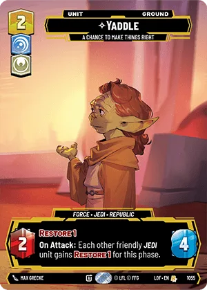 On Attack: Each other friendly Jedi unit gains Restore 1 for this phase.